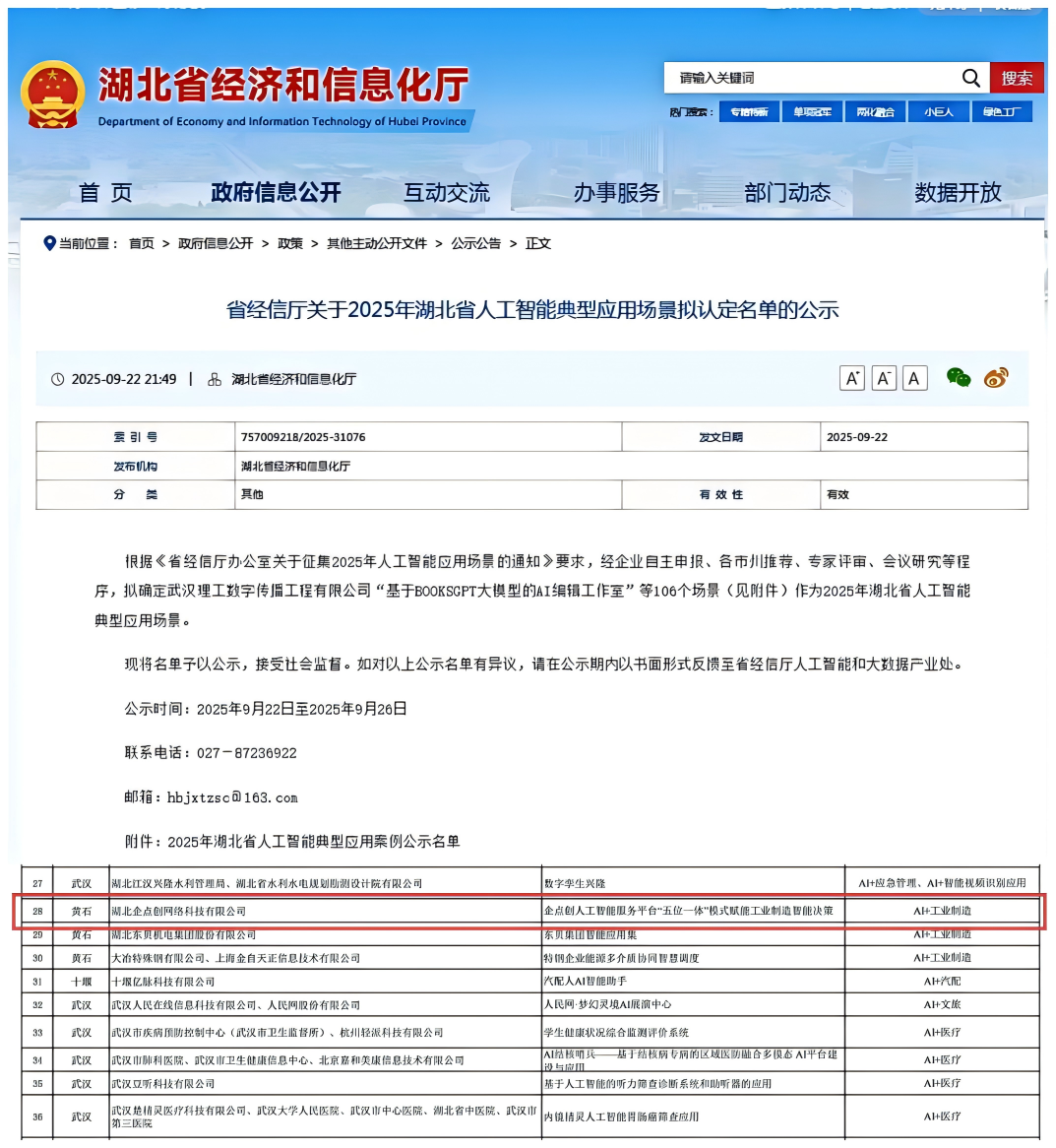 9月22日,湖北省经信厅公示2025年湖北省人工智能典型应用场景名单,企点创凭借在人工智能技术与制造业深度融合的创新实践案例“企点创人工智能服务平台“五位一体”模式赋能工业制造智能决策”成功入选。企点创人工智能服务平台聚焦“五位一体”和“保底套餐”模式,主要提供工业数据采集和基于AI技术的预测性维护、质量控制、供应链优化、能源优化、工艺优化、安全管控等应用,助力实现智能决策,赋能制造业数字化转型。