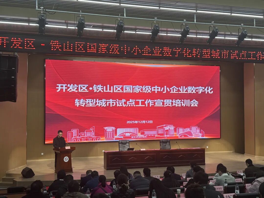 12月12日上午,开发区·铁山区国家级中小企业数字化转型城市试点工作宣贯培训会在湖北工程职业学院成功召开。黄石市经信局副局长张朔、开发区管委会副主任·铁山区副区长黄海东、中国信息通信研究院相关专家、国家级试点数字化转型服务商代表及区内铜铝精深加工、特钢精深加工、高端装备制造等五大行业100余家企业代表共同参会。黄石市经信局副局长张朔作总结讲话,对试点工作的落地实施提出指导意见。