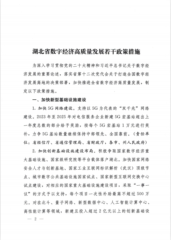湖北省人民政府办公厅关于印发湖北省数字经济高质量发展若干政策措施的通知
