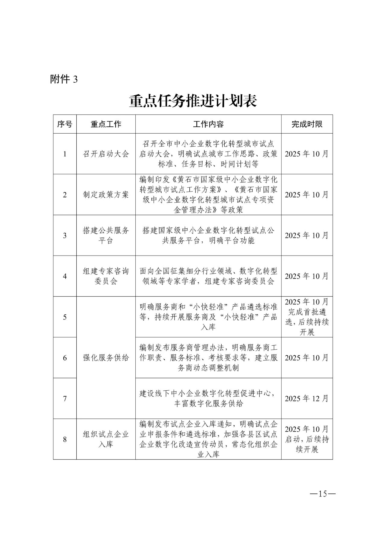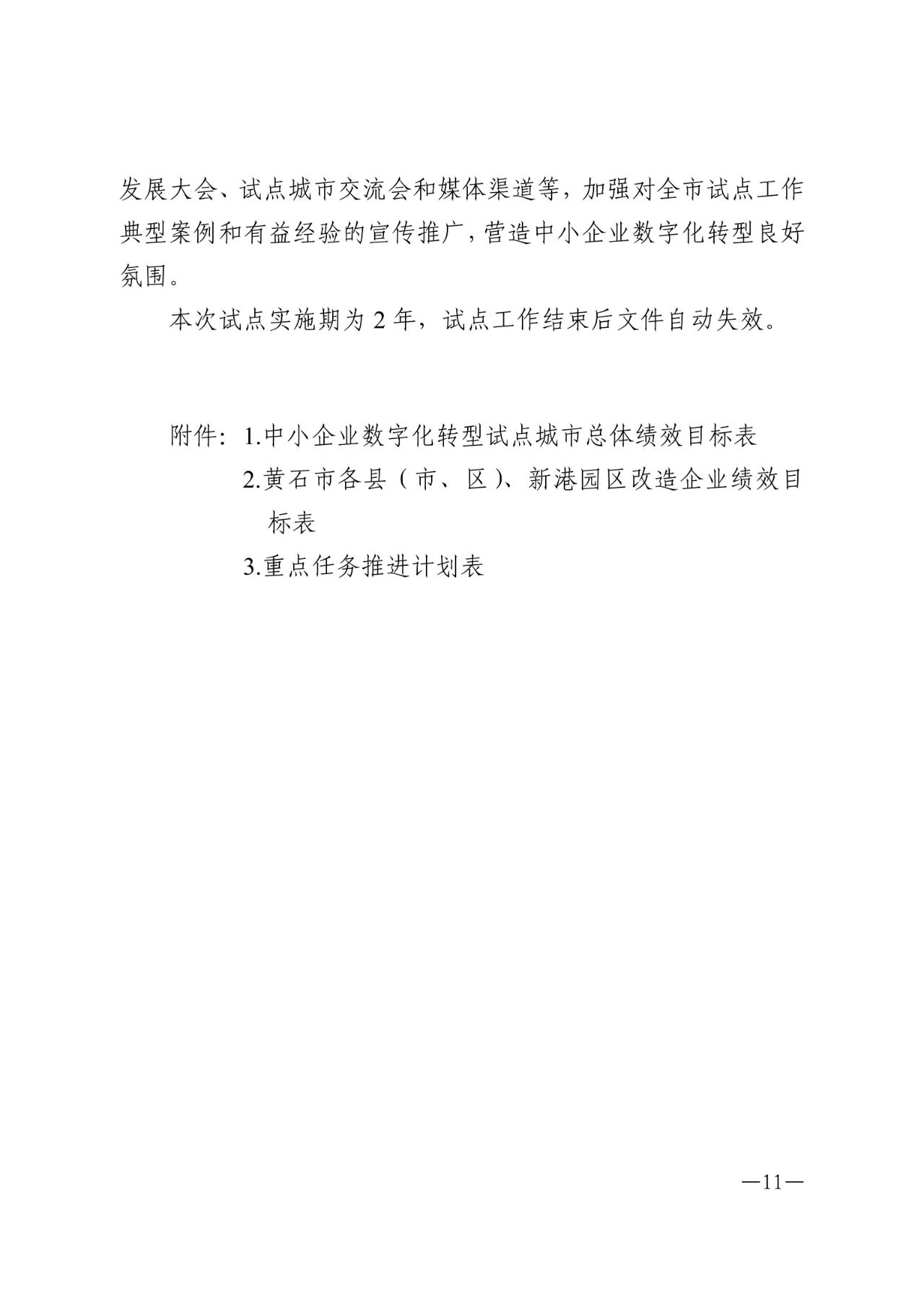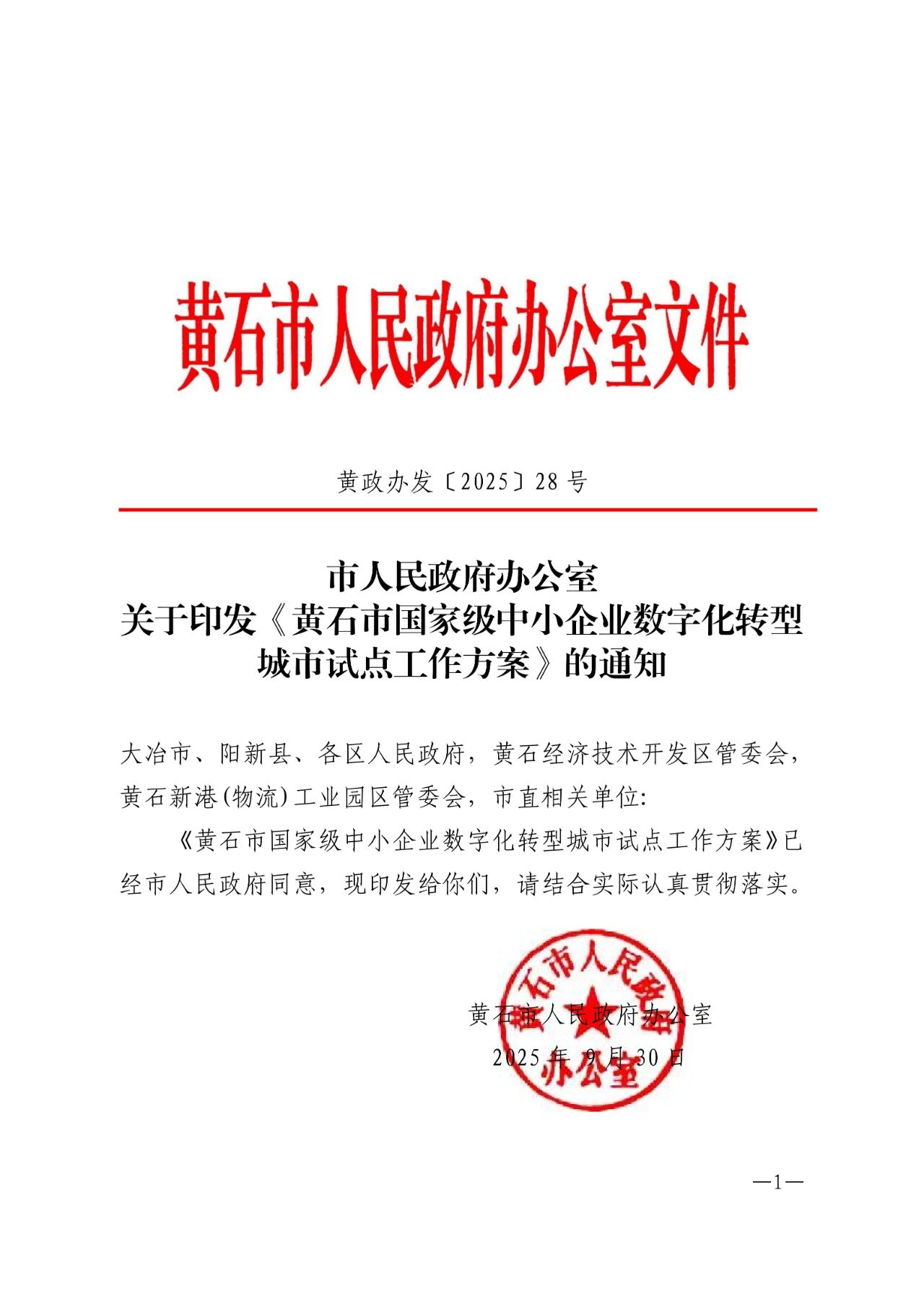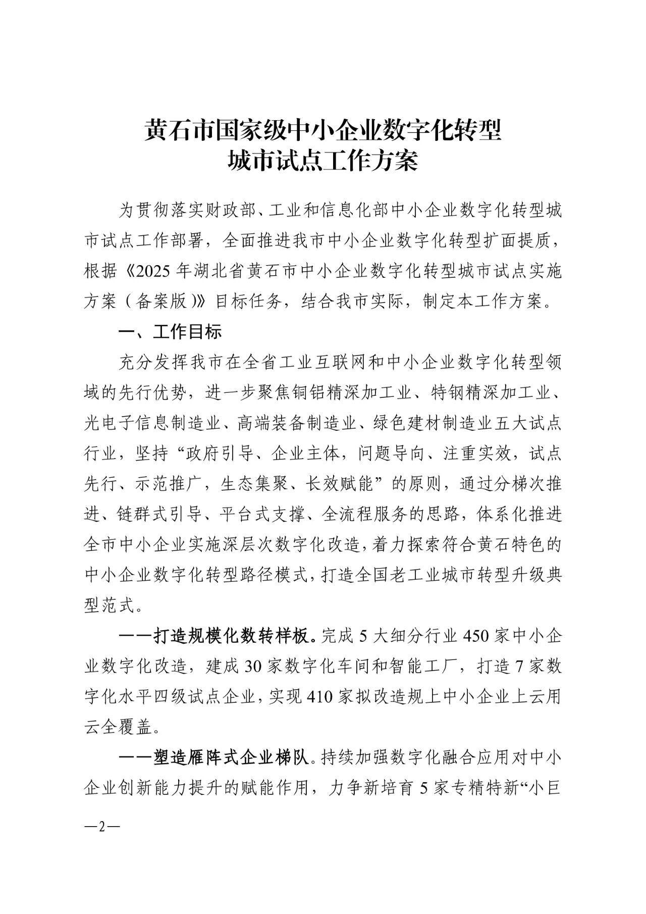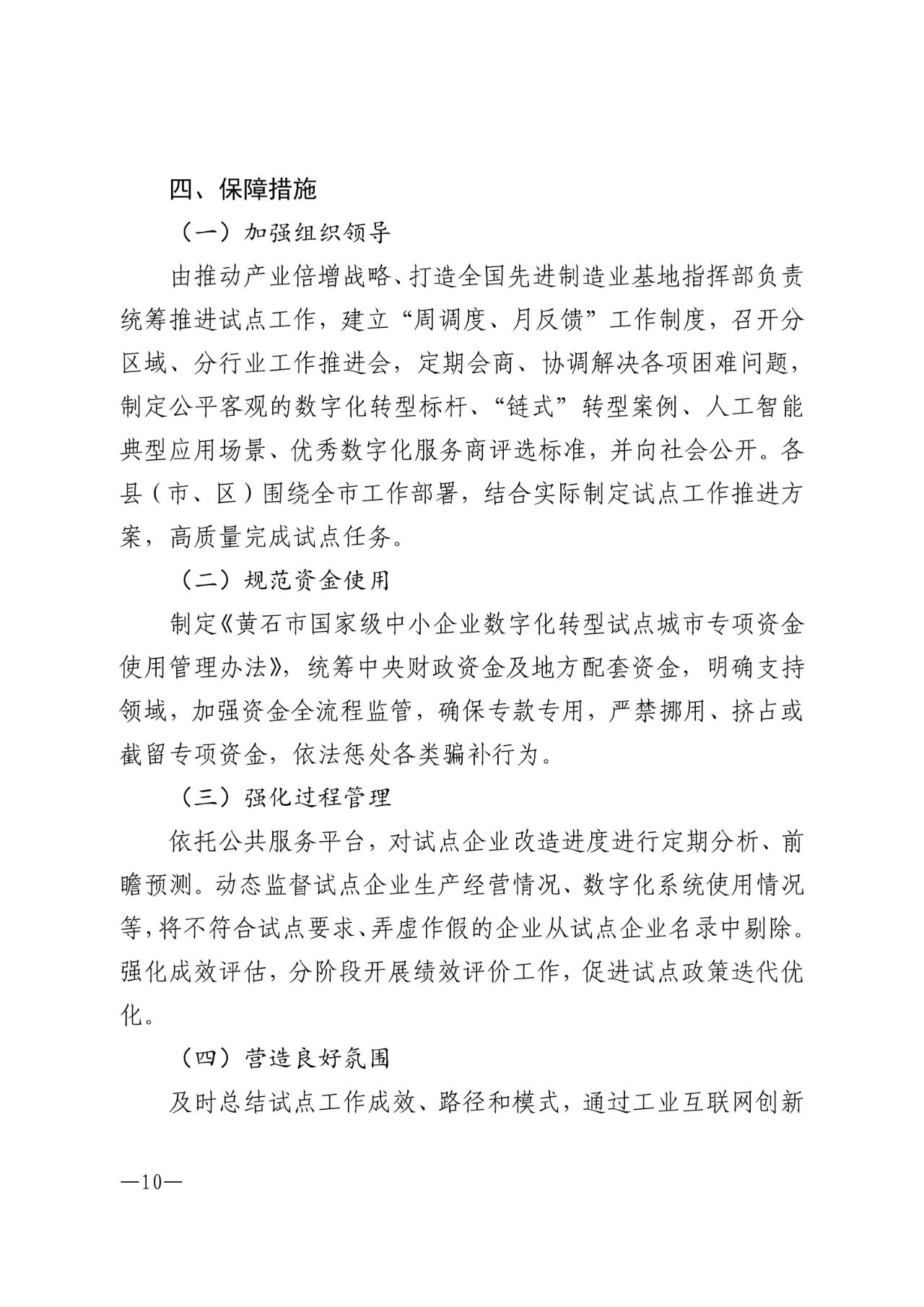 关于印发《黄石市国家级中小企业数字化转型城市试点工作方案》的通知