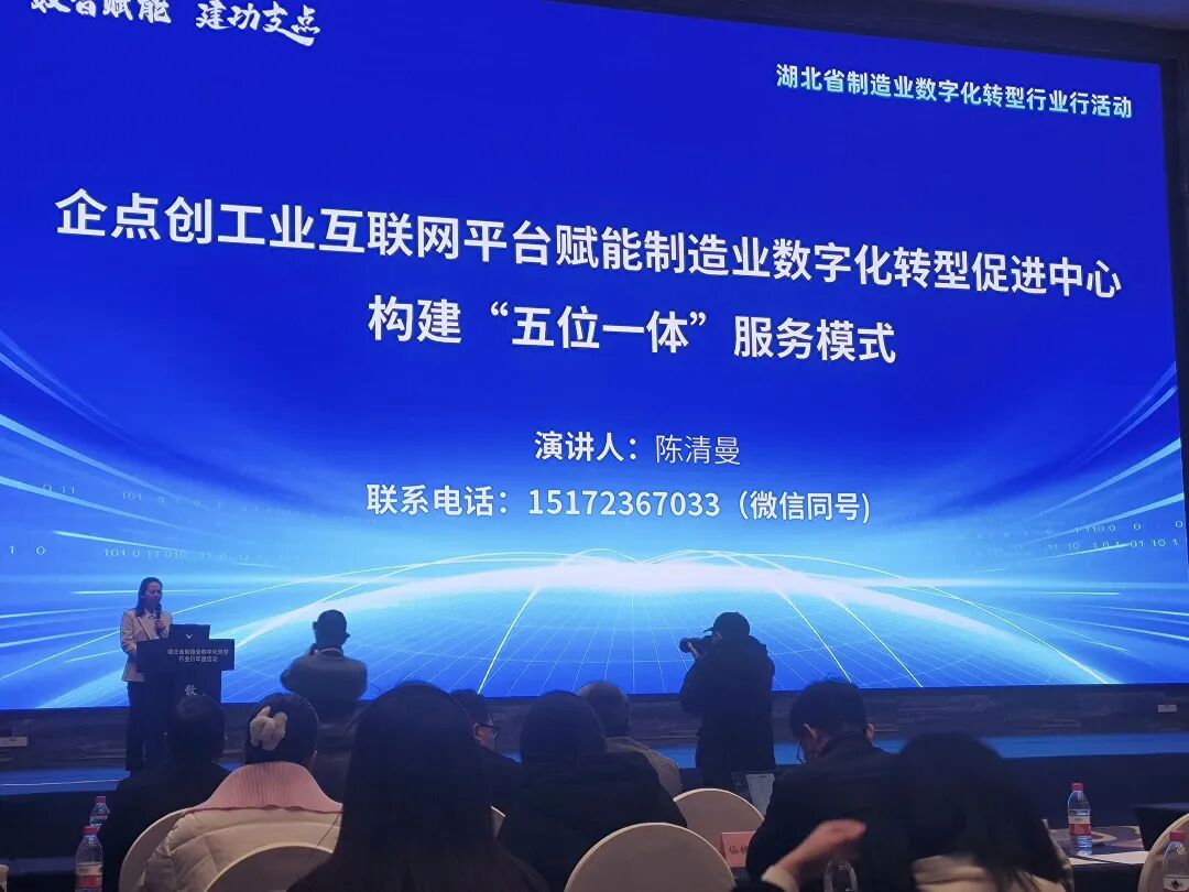 12月12日,企点创参加“数智赋能 建功支点”湖北省制造业数字化转型行业行年度活动(孝感站)并作主题演讲NO.4 2025年企点创在黄石市省级中小企业数字化转型试点工作中持续深耕,成功入选黄石市国家级试点服务商,全面参与各县市区国家级试点政策宣贯会,深度服务黄石市中小企业数字化转型2025年,企点创在黄石市省级中小企业数字化转型试点中更进一步,继续支撑多家试点企业完成验收工作。2025年10月,黄石市经信局公布了黄石市国家级试点服务商名单(第一批),企点创成功入选铜铝精深加工业、光电子信息制造业、绿色建材制造业、高端装备制造业四大行业服务商。企点创全面深度参与各县市区国家级试点政策宣贯会活动,继续赋能服务黄石市中小企业数字化转型工作。