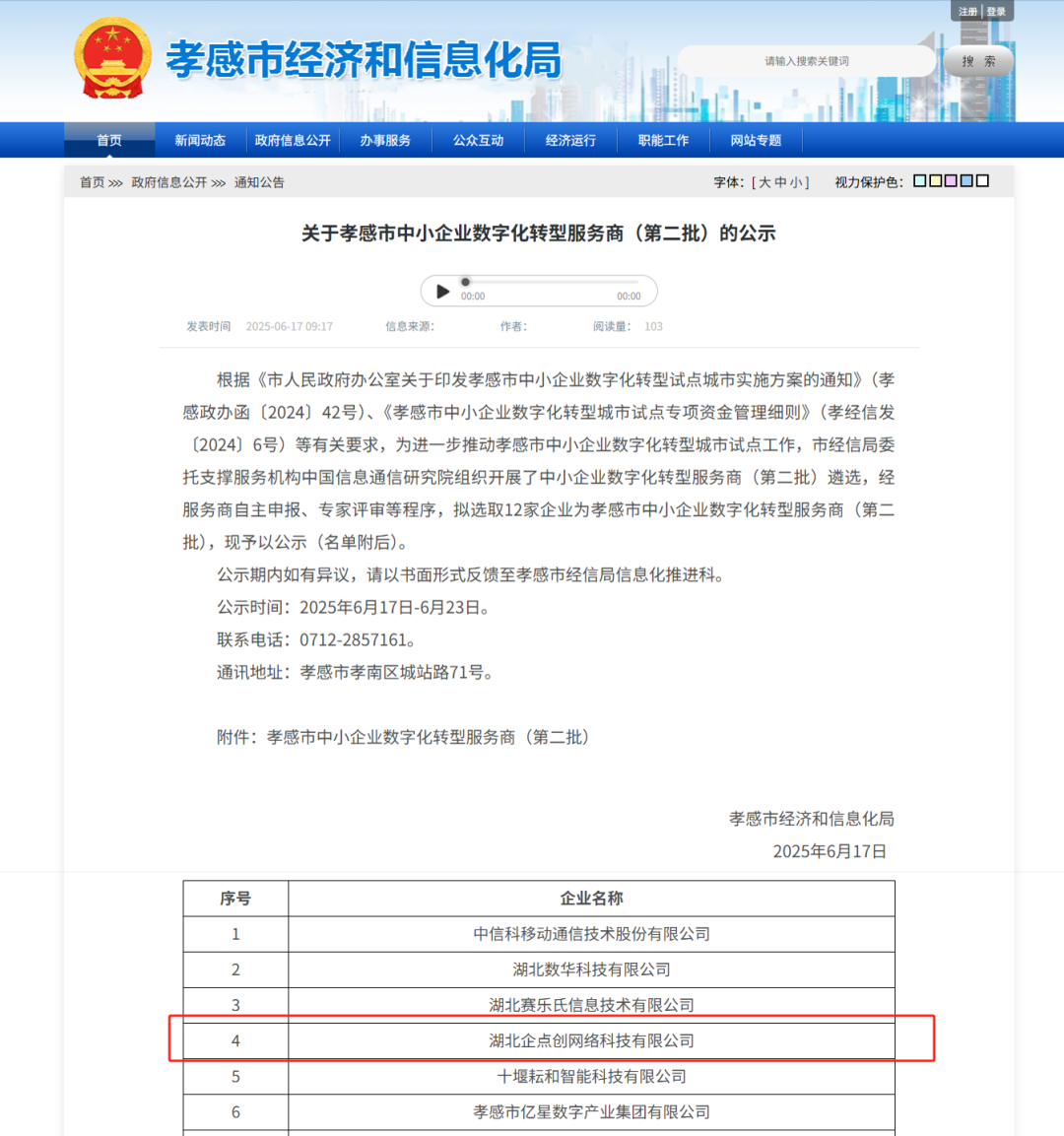 10月28至30日,企点创协同黄石市经信局开展2家试点企业数字化转型项目验收及多家已验收企业系统“回头看”核查10月17日,企点创入选黄石市国家级中小企业数字化转型试点服务商名单